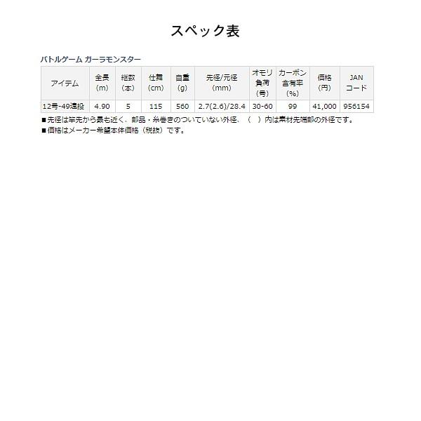 商品情報 ・狙うはガーラ(GT)の30kgオーバー! ・ガーラを攻略するために専用設計されたスペシャルロッド。 ・目に見えない素材のネジレを防ぐ「X45」・ジョイント部のパワーロスをなくす「V-ジョイント」・粘りのある「高密度HVFカーボン」など、ダイワならではのテクノロジーを惜しみなく搭載。 ・力と力の対決!というくらいタフな釣り・ハードな使用に耐えられるスペック。もちろんフエフキダイ(タマン)やコロダイ釣りにも十分対応。 掲載写真は参考掲載です! お譲りする商品は【上記タイトル記載商品】1点のみです。お間違いのないようお願い致します。/A |