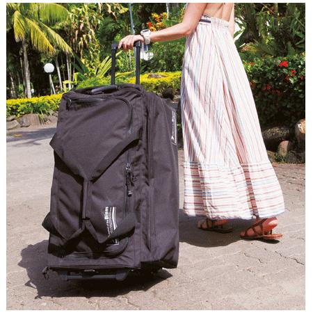 大型バッグで楽々収納軽量で小回りの利くダイビングバッグ大型でメッシュバッグごと器材を収納可能収納式のキャリーハンドルとスムースなホイール開口部が大