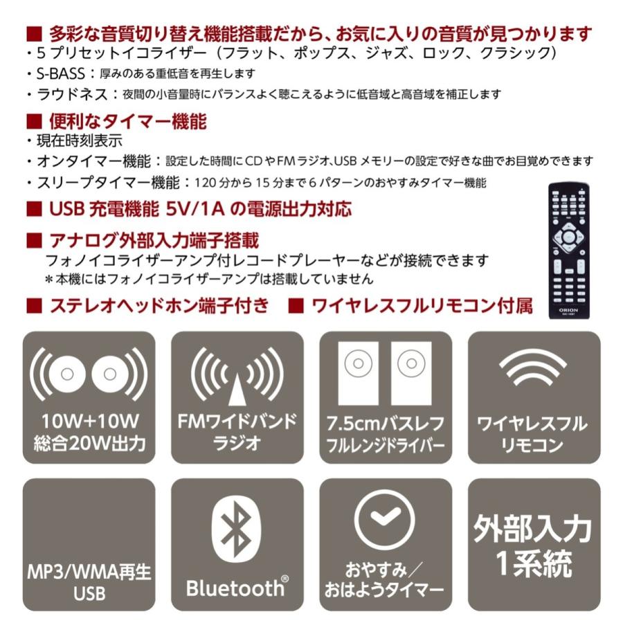 商品情報 音像定位にこだわった「和紙素材フルレンジスピーカー」を採用。 木製MDFバスレフキャビネットに組み込むことにより豊かな低域と 伸びやかな中高音域を再生します。 和紙素材W-RPMスピーカー スピーカーコーン紙の表面と裏面に性質の違う素材を独自の製法で 1枚のコーン紙に抄紙しています。 表面には1万円札に使われている和紙素材の「みつまた・三椏」を使う事により ハリのある明瞭な中高音を再生します。 裏面には弾力性に優れた「パルプ」を使うことにより 内部損失を大きく取ることができ、豊かな低音域再生を実現しています。 Bluetooth 5.0 USBメモリーに記録された音楽データ(MP3/WMA)再生 ワイドバンドチューナー搭載 多彩な音質切換え機能を搭載 オンタイマー機能 スリープタイマー機能 USB充電機能(5V/1A) アナログ外部入力端子搭載 3.5mm ステレオヘッドホン端子 ワイヤレスフルリモコン付属 [家電・AV機器・カメラ][オーディオ][オーディオコンポ][JAN: 4550454308529] |
