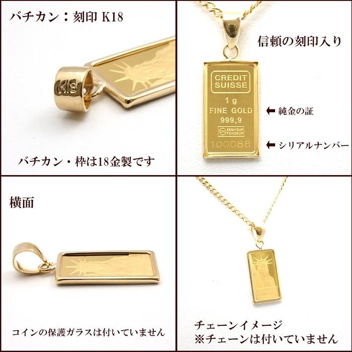 クレジットスイス銀行発行の純金インゴット1g。18金製の枠がついたペンダントトップ。プレゼントに最適なゴールドジュエリーでございま