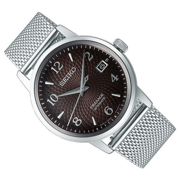 商品情報 【素材:ケース】ステンレス 【素材:ベルト】ステンレス 【素材:風防】ボックス型ハードレックス 【色:文字盤】メタリックダークブラウン 【色:ベルト】シルバー 【色:ケース】シルバー 【サイズ:ケース】約45.4x38.5x11.8(mm) 【サイズ:文字盤】直径約32(mm) 【サイズ:ベルト幅】約20(mm) 【重量】約95(g) 【備考】メーカー保証1年付 自動巻(手巻き付) 秒針停止機能 50m防水 カレンダー(日付) 裏スケルトン 日本製 手首周り最大約20cm ≪取扱説明書番号"4R35"≫ |