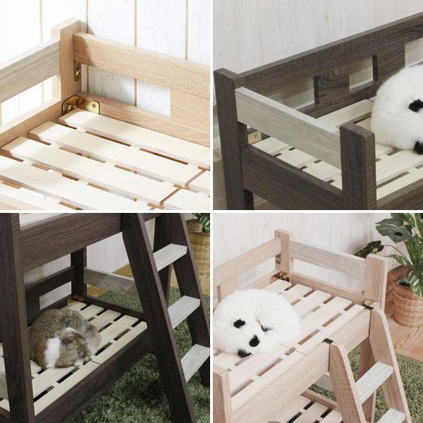 二段ベッド すのこベッド 猫用 ネコ用 木製 梯子付き 猫家具 かわいい おしゃれツートンカラーが可愛いハシゴ付きペット用2段ベッド。床板部分はスノコ式で通気性抜群、2分