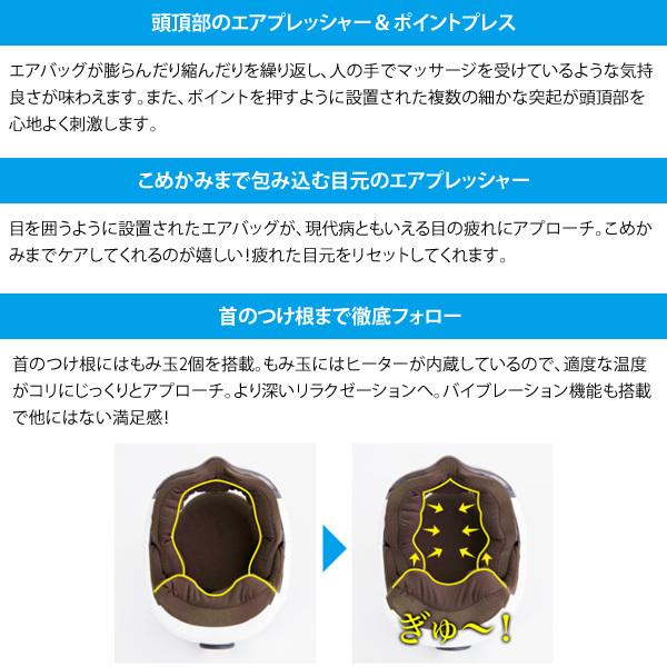 商品情報 モンデールヘッドスパに待望の新カラーバージョンが仲間入り!新バージョンの本体ボディは、艶やかで美しいホワイトはそのままに、本体の内側に肌ざわりがソフトなダークブラウンの生地を採用し、頭へのフィット感をさらに高めました。プロの手にしっかりと包み込まれたような感覚と、施術後の満足度もバージョンアップ。エアプレッシャーと電動バイブレーションによるハンドタッチ感覚の動作、首元をじんわりと温めるカーボンヒーターやヒーリングミュージックなどリラクゼーション機能が至福のひと時へと誘います。コンパクトで持ち運びがしやすく、コードレスなのでオフィス等でも気軽に使用できます。 サイズ(約):幅200×奥行250×高さ240mm、※頭囲約56〜64cmまで対応 重量(約):1kg 定格:電源/DC5V1A 電力5W(充電時)、ACアダプター/AC100-240(50/60Hz) 材質:ポリカーボネイト70%、ABS30% セット内容:本体、ACアダプター、イヤホン、専用ケース、取扱説明書 使用可能条件:気温/5〜40度、湿度/80%未満、気圧/860hpa〜1060hpa 作動時間:15分間のオートモード(1回の充電で約10回使用可能) 保証期間:1年 生産国:中国 |