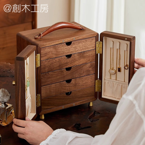 【制作者】初心 【当店は初心から委託されて代理販売を行なっています】 ◆作品説明◆ ウォールナット材を使用した、丁寧に作られたアクセサリーボックスです。 新型の設計は上部に革製の取っ手を取り付けました、持ち運びに便利でした。 それから、内部引き出しの取っ手はなし、代わりに、使用時は中央の透かし彫りに直接指を入れてトレイを取り出すことができます。 材質:ウォールナット材、真鍮、革、ベロア サイズ:約 幅22×奥行16×高さ29cm 重さ:約2.6kg ◆ご注文につきまして◆ 運送会社:佐川急便 配送状況確認用URL: *返品は原則としてお受け出来かねますが、当方のミスによる誤送、破損などのトラブルに関しましては誠意を持って対応させて頂きますので、評価前にお問い合わせ下さい。 |