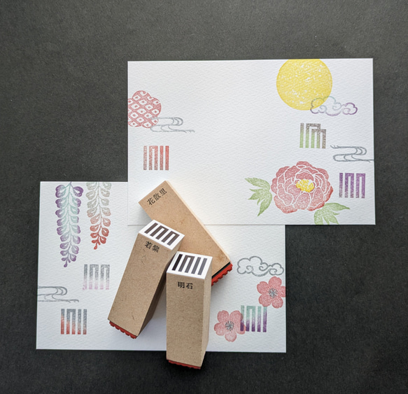 源氏香スタンプ全部セットです。 2.帚木 (ははきぎ) 3.空蝉 (うつせみ) 4.夕顔 (ゆ