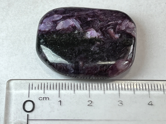 ライトを当てる角度によってシラーが煌めき、陰と陽が入り混じるような美しいチャロアライトのタンブルです✿*:・ 瞑想やグラウンディングなどに適していると思います(*´꒳`*) 自然光のお写真とサイズは画像7枚目になります(❁ᴗ͈ˬᴗ͈)。:.✿*:・ ✡️チャロアイト ラリマー、スギライトに並んで世界三大ヒーリングストーンのひとつに数えられます。 ロシア連邦サハ共和国のチャロ川流域にあるムルン山塊のみでしか産出されず、チャロアイトの名はこのチャロ川流域が語源になったという説とロシア語の「魅惑する」という意味を持つcharoから名付けられたという二つの説があるようです。 紫色の地色に白や黒のマーブル模様が特徴で、結晶繊維の構成によっては稀にキャッツアイ効果が現れるものもあります。 ✡️チャロアライトの効果 ◯魅惑 ◯癒し ◯浄化 ◯保護 ◯ 精神的疲労回復 瞑想やヨガにいかがでしょうか❁⃘*.゜ ※本体以外のディスプレイは含みません ※ 天然石のため細かいキズや欠け、へこみやひび割れなどが 見られる場合があります。 ⚠︎撮影時の照明やお使いのディバイス環境により、実物と色調が異なる場合がございます。