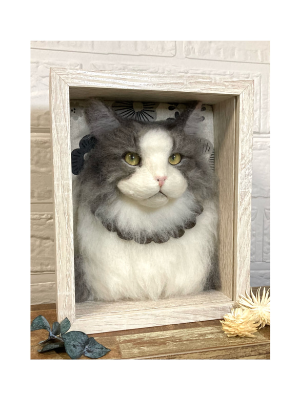 ご覧いただきましてありがとうございます*.゚ 美形なノルウェージャンちゃんを作りました。 nyan boxはboxに入った半立体の 羊毛フェルト猫ちゃんです。 展示では反射を避けるためガラスを除いていますが、 正面にガラスが来るためお手入れが簡単にできます。 "愛猫ちゃんと一生一緒!"をコンセプトに お作りしています。 *.゚⋆⸜⸝⋆*.゚*.゚⋆⸜⸝⋆*.゚*.゚⋆⸜⸝⋆*.゚*.゚⋆⸜⸝⋆*.゚*.゚⋆⸜⸝⋆*.゚* .゚*.゚⋆⸜⸝⋆*.゚*.゚⋆⸜⸝ こちらは展示作品です。 ご購入はお控えください。 ご注文の際は、必ず「nyanbox ご注文方法と詳細について」をお読みいただいた上で、 ご注文用のページよりお願い申し上げます*´ㅅ`)♡⃛ ※ご注文用のページは、下記タイトルにて出品しております。出品がない際は、その月の受付は終了しております。毎月2日にご注文用ページを出品致しますので、どうぞよろしくお願い申し上げます。 作品タイトル 【ご注文用】nyanbox 羊毛フェルト 愛猫 オーダーメイド 必ずこちらのページよりオプション等をご選択の上、 ご購入ください。 他にも展示作品をご覧いただけますと幸いです*´ㅅ`)♡⃛ どうぞよろしくお願い申し上げます。 羊毛フェルト 猫 リアル ぬいぐるみ オーダー オーダーメイド