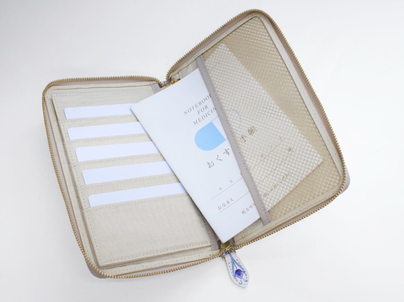 診察券や保険証も一緒に収納できるので、うっかり忘れ防止に。カード入れが15枚分あるので、