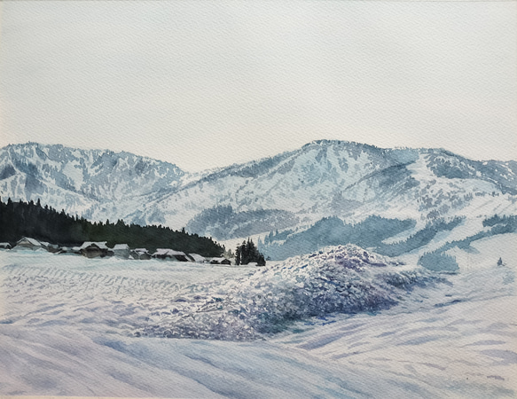 水彩画 F6横(41.0cm×31.8cm)※額装込み ※送料込み 2023年作雪景色を求めて旅